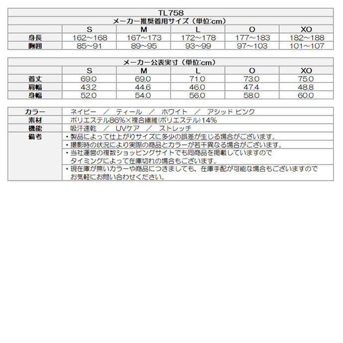 太陽光を遮断し、衣服内温度の上昇を防ぐ【T-SHADE】機能を搭載。縦に細く入ったラインデザインがスタイリッシュです。