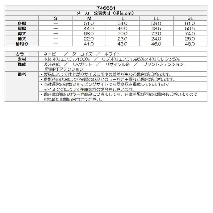吸汗速乾、UVカットに加え接触冷感を備えた素材を使用しています。衿と袖口にリブを使用したクラシックなディティールとFILAオリジナルのリーフ柄パネルプリントデザインになっています。
